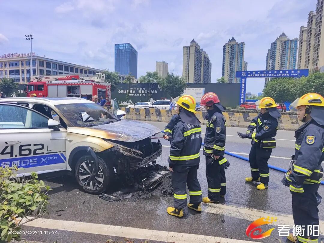 核心提示:据衡阳新闻网报道,7月11日上午11时35分,在衡阳市政务中心街路口附近,一辆路面行驶的电动汽车突发自燃,往外冒着滚滚白烟,形势
