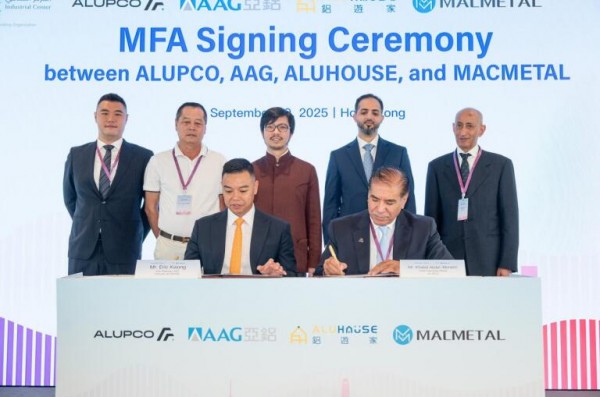 2025年9月29日,中国铝型材制造业巨头——AAG亚铝集团,正式宣布与沙特阿拉伯王国的铝型材生产商ALUPCO签署总体框架协议。此次战略合作涉及AAG亚铝集团旗下分公司铝遊家(AluHouse)及迈科美(Macmetal),双方将成立三家全新合资企业,总投资额将达5亿美元,并计划于沙特阿拉伯打造规模最大、功能最完备的铝加工产业基地,重点聚焦铝型材加工、模块化建筑及太阳能板边框等核心业务。
